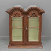 Eiken wandvitrinekast met dubbelgebogen kap, begin 18e eeuw -witte vlek op linker zijkant-, 106 × 95 × 45 cm
