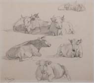 Anton Mauve (1838-1888), studie van rustende koeien, potlood op papier, l.o. gesigneerd, 22 × 24,5 cm