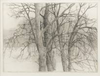 Charles Donker (1940), 'Houtsnip vier essen februari', ets nr. 28, r.o. gesigneerd, 21,5 × 29 cm
