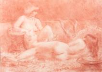 Harry Frans Hubert Maas (1906-1982), zittend en liggend naakt, rood krijt op papier, r.o. gesigneerd en gedateerd 1976, 39 × 54 cm