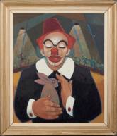Henri Louis 'Joub' Wiertz (1893-1966), clown met konijn in circuspiste, olieverf op board, l.m. gesigneerd -twee grote witte krassen rechts-, 60 × 50 cm