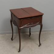 Mahonie dranktafel op vier gebogen poten met wieltjes, het blad is open te klappen waardoor het interieur naar boven komt, Engeland, circa 1900 -uitneembaar blad ontbreekt, bovenblad met krassen-, 73 × 51 × 54 cm