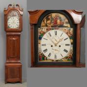 Schots staand horloge in mahonie kast, de beschilderde wijzerplaat met personificaties van Engeland, Schotland, Wales en Ierland, adres: Robert Currer, Falkirk, 1839-1875, 220 × 50 × 24 cm