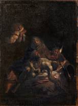 Italiaanse School: de bewening van Christus, olieverf op doek, niet gesigneerd, 17e/18e eeuw -grotendeels ingeschilderd, verdoekt-, 55 × 40 cm