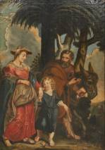 Naar Peter Paul Rubens (1577-1640), de terugkeer van de Heilige Familie, olieverf op doek, 18e eeuw -meerdere restauraties en gat in voet van kind- ,163 × 113 cm
