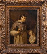 Navolger Giovanni Battista Piazzetta, vier kopieën van portretten van Apostelen: Petrus, Jacobus de Oudere, Philippus en Andreas, krijt op papier, 18e/19e eeuw -enkele vouwen en scheurtjes-, 39 × 32 cm, waarvan één ingelijst