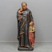 Polychroom gipsen heiligenbeeld: Sint Vincentius, 20e eeuw -defecten en verfverlies-, 105 × 38 × 25 cm