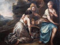Italiaanse School: wassende vrouwen in landschap, olieverf op doek, 18e eeuw -vele inschilderingen, verdoekt-, 59 × 77 cm