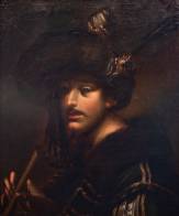 Italiaanse School: portret van man met tulband en fluit, olieverf op doek, niet gesigneerd, 17e eeuw, gebaseerd op een verloren gegaan schilderij van Giorgione (1477-1510) -gedoubleerd, gefixeerd scheurtje rechtsboven, enkele partijen verpoederd-, 65 × 55 cm