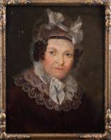 Hollandse School: portret van vrouw in kanten kap, marouflé, niet gesigneerd, verso met de tekst 'toegeschreven aan J.W. Pieneman, eerste helft 19e eeuw', maar mogelijk niet van zijn hand -meerdere inschilderingen-, 46 × 35,7 cm