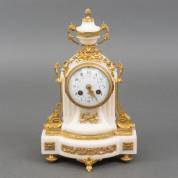 Albasten pendule met verguld bronzen ornamenten, de geëmailleerde wijzerplaat met bloemguirlandes, Frankrijk, 19e eeuw -email wijzerplaat met herstellingen, slinger niet aanwezig-, 30 × 19 × 12 cm