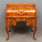 Vruchtenhouten secretaire met bloemmarqueterie, staand op cabriolepoten, onduidelijk gemerkt op zijkant lade, Louis Quinze-stijl, tweede helft 20e eeuw, 106 × 90 × 64 cm