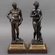 Paar donkergepatineerde bronzen beelden: kopie naar de Belvedere Hermes en de Medici Venus, beide op porfieren basement, tweede helft 18e/19e eeuw, 41 × 15 × 15 cm