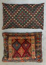Kaukasisch kelimkussen, eind 19e/begin 20e eeuw, en Koerdisch kussen Mossoul, grootste 60 × 35 cm