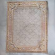 Groot Deventer tapijt met gekruist bladrankendecor op beige fond, de rand met bloemranken, Louis Seize-stijl, uitvoering Koninklijke Verenigde Tapijtfabrieken, onderop gemerkt 'K.V.T.-57-154 1e kw.' -enkele gele vlekjes, maar nog volle en gelijkmatige pool-, 530 × 405 cm