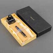 Blauwe vulpen met 14kt gouden punt, in houten presentatiedoos, model Souverän M400, uitvoering Pelikan, de dop gemerkt Deloitte & Touche