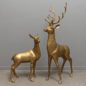 Paar messing sculpturen: edelhert en hinde, 20e eeuw, 123 × 64 × 32 cm