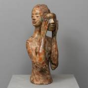 Aat Verhoog (1933), buste van een vrouw met masker, gepatineerd brons, gesigneerd, 62 cm