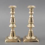 Paar messing kandelaars op rechthoekige voet, Engeland, tweede/derde kwart 19e eeuw, 24 × 11 × 10 cm