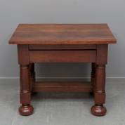 Eiken tafel, de vier poten rustend op bolpoten, verbonden door regel, 18e eeuw -gebruikssporen-, 72 × 89 × 61 cm