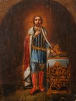 Russische icoon: Alexander Nevsky, tempera op paneel, eind 19e eeuw -enkele droogtescheuren in paneel-, 54 × 40 cm
