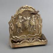 Latoenkoperen chanoekia met decor: de verspieders van Kanaän, 18e eeuw, 28 × 25 × 9 cm