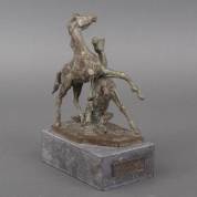Bronzen sculptuur: twee paarden, niet gesigneerd, op stenen basement met plaquette: aangeboden door het W.P.N., oktober 1987, afmetingen inclusief basement 24 × 18 × 10 cm