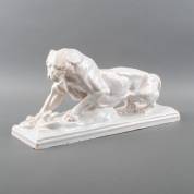 Witgeglazuurd aardewerk beeld: tijger en slang, onduidelijk gemerkt HB? -enkele glazuurchipjes van onderrand-, 30 × 60 × 18 cm