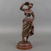 Ernest Rancoulet (1842-1918), dame met waaier, brons, op basement, gesigneerd, hoogte 50 cm