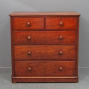 Mahonie commode met twee kleine en drie grote lades, Engeland, 19e eeuw -gebruikssporen, rechter zijpaneel verbleekt, enkele krimpscheurtjes-, 117 × 112 × 50 cm