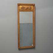 Spiegel, in twee delen, in verguld houten lijst met kabelrand, de hoeken met rozetten, empire -gebruikssporen-, 64 × 26 cm