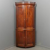 Eiken hoekkast met in het gebogen front vier deuren, bekroond door hekje, Louis Seize -enkele delen van interieur los-, 230 × 67 × 67 cm