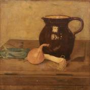 Hollandse School: stilleven met oorkan, ui en prei, olieverf op doek, r.o. gesigneerd H. Nijland -klein beetje verfverlies, kleine restauratie linksonder-, 43 × 43,5 cm