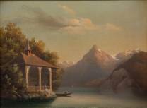 Zwitserse School: Tellskapelle an der Axenstrasse, olieverf op doek, l.o. onduidelijk gesigneerd, 19e eeuw -ansicht bijgevoegd-, 24 × 32 cm