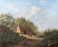 Adrianus Hendrikus de Bruine (1807-1870), bosgezicht met figuren bij boerderij, olieverf op doek, r.o. gesigneerd en gedateerd 3 augustus 1830 -retouches-, 63 × 77,5 cm