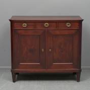 Mahonie penantkast met drie lades en twee deuren, circa 1800 -gebruikssporen en krimpscheuren-, 89,5 × 101,5 × 43,5 cm
