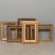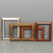 Vijf diverse schilderijlijsten, grootste sponningmaat 40,5 × 56,5 cm
