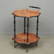 Serveerwagentje op wielen, de twee bladen ingelegd met diverse houtsoorten, 77 × Ø 55 cm
