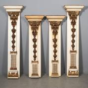 Vier crèmewitte en bronskleurige pilasters, vermoedelijk Portugal -bruine aanslag, enkele slijtages-, tweemaal 157,5 × 43 × 20,5 cm en tweemaal 135,5 × 43 × 20,5 cm