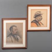 Gerard Cornelis Krol (1882-1950), twee portretten, gemengde techniek, beide l.o. gesigneerd -één zonder glas-, 34 × 30 cm en 40 × 30 cm