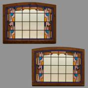Twee glas-in-loodramen in grenen omlijsting, begin 20e eeuw, 86 × 111 cm