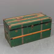 Groengelakte met metaal beslagen hutkoffer, 48 × 100 × 48 cm
