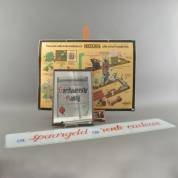 Glazen reclamebord: 'en Spaargeld en Rente cadeau', reclamespiegel: 'Van Gilse Boerhaavesche Kandij' en kartonnen winkelreclamebord: 'Nescafe, van ongebrande koffie tot de fabricage van zuiver koffie extract in poedervorm', 20e eeuw -gebruikssporen-, herkomst: Kruideniersmuseum Utrecht