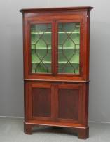 Mahonie hoekvitrinekast, de beglaasde deuren met roedeverdeling, daaronder mahonie paneeldeuren, Engeland, 19e eeuw -geen sleutel-, 207 × 81 × 81 cm