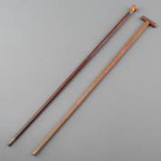 Twee wandelstokken met ellematen, waarvan één met extra uitschuifbaar deel, en messing ferrule, beide 19e eeuw, uitschuifbaar model lengte 90 cm