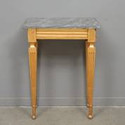 Verguld houten wandtafeltje met grijs marmeren blad, Louis Seize-stijl en vermoedelijk periode -gebruikssporen-, 74 × 56 × 33 cm