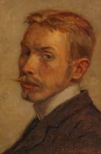 Laurent Verwey van Udenhout (1884-1913), zelfportret, marouflé, r.o. gesigneerd en gedateerd '08, achterzijde met annotatie: 'zelfportret van den genialen, maar helaas jong gestorven kunstenaar Laurent Verwey van Udenhout' -retouches-, 30 × 20 cm, herkomst: Verzameling August Heyting