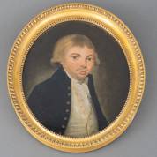 Vermoedelijk Engelse School: ovaal herenportret, olieverf op doek, niet gesigneerd, circa 1800 -craquelé, inschilderingen-, 35 × 29 cm