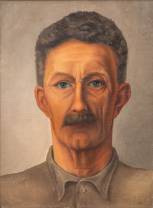 Schilderij: portret van man met snor, olieverf op doek, r.o. onduidelijk gemonogrammeerd B?, eerste helft 20e eeuw, 40 × 30,5 cm
