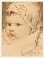 Bernard Blommers (1845-1912), kinderportret van Thérèse, aquarel, r.o. gemonogrammeerd, verso met handgeschreven nieuwjaarswens van de kunstenaar voor het jaar 1892, 14,5 × 11 cm